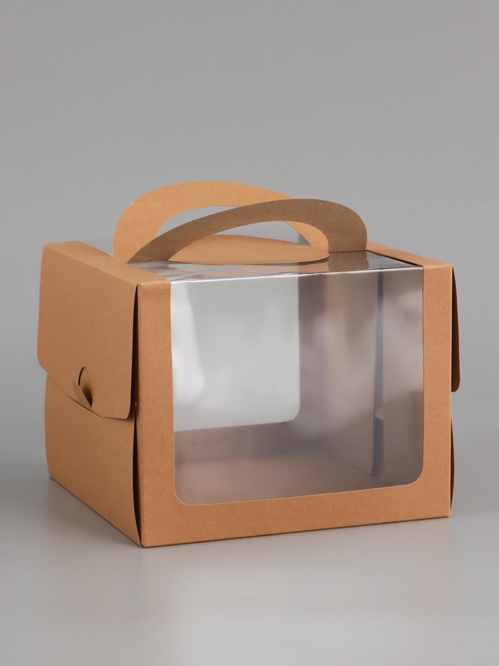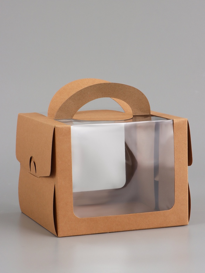 Коробка под бенто-торт с окном, крафт, 18×18×14 см