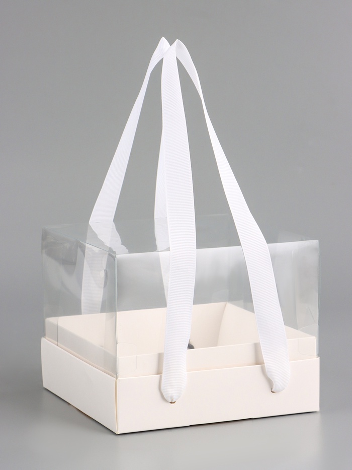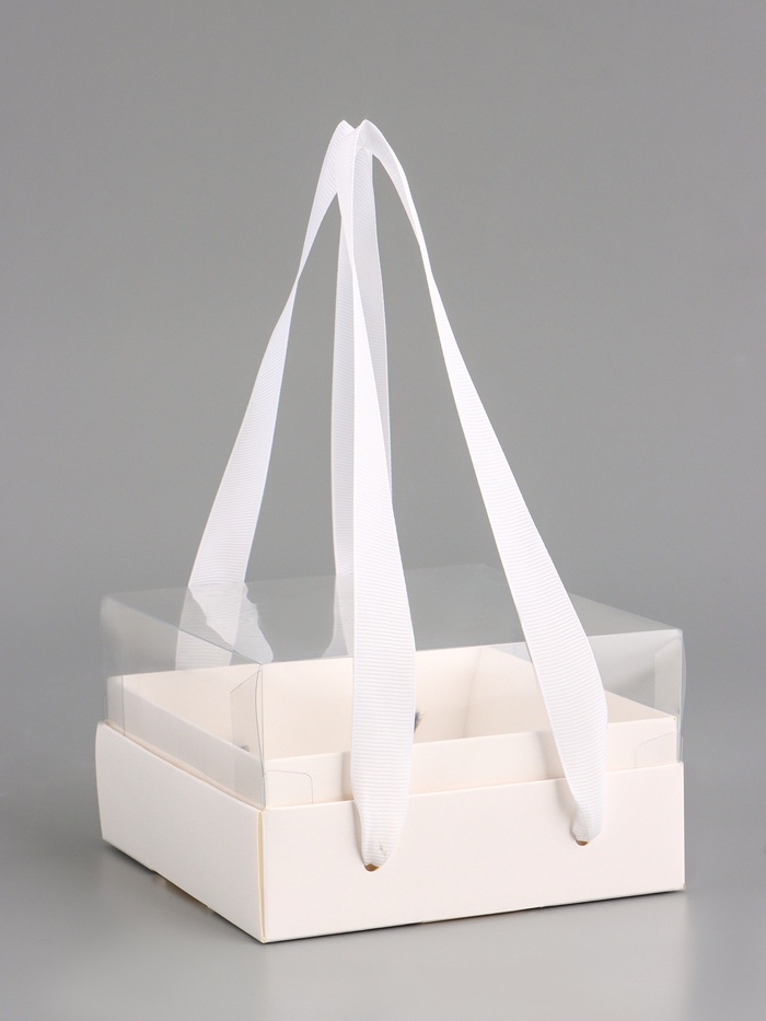 Коробка под бенто-торт с ленточками, белая, 18×18×14 см