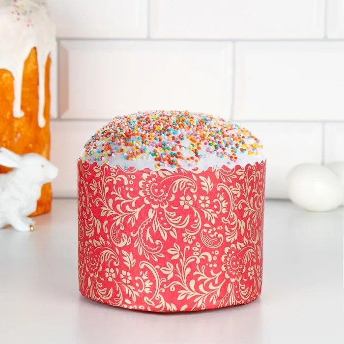Форма бумажная для кекса, маффинов и кулича «Флора красная», 124×90 мм