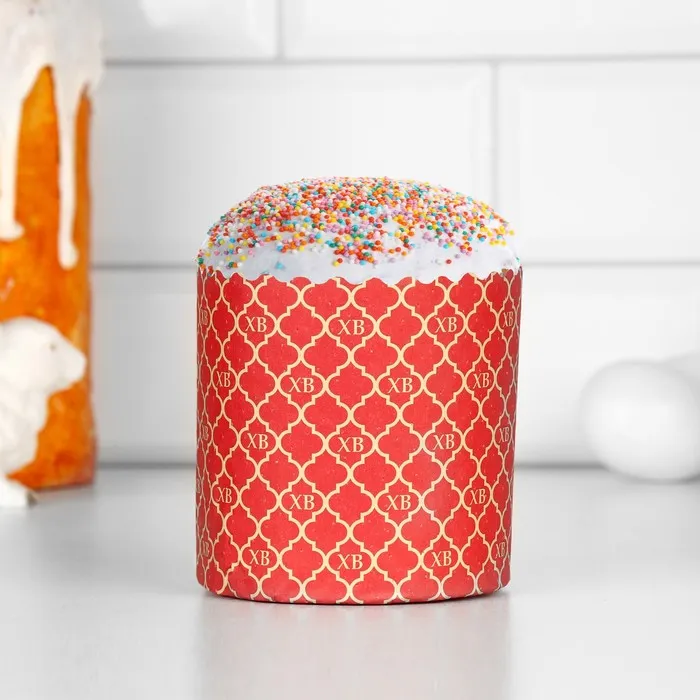 Форма бумажная для кулича «ХВ красная», 90×90 мм