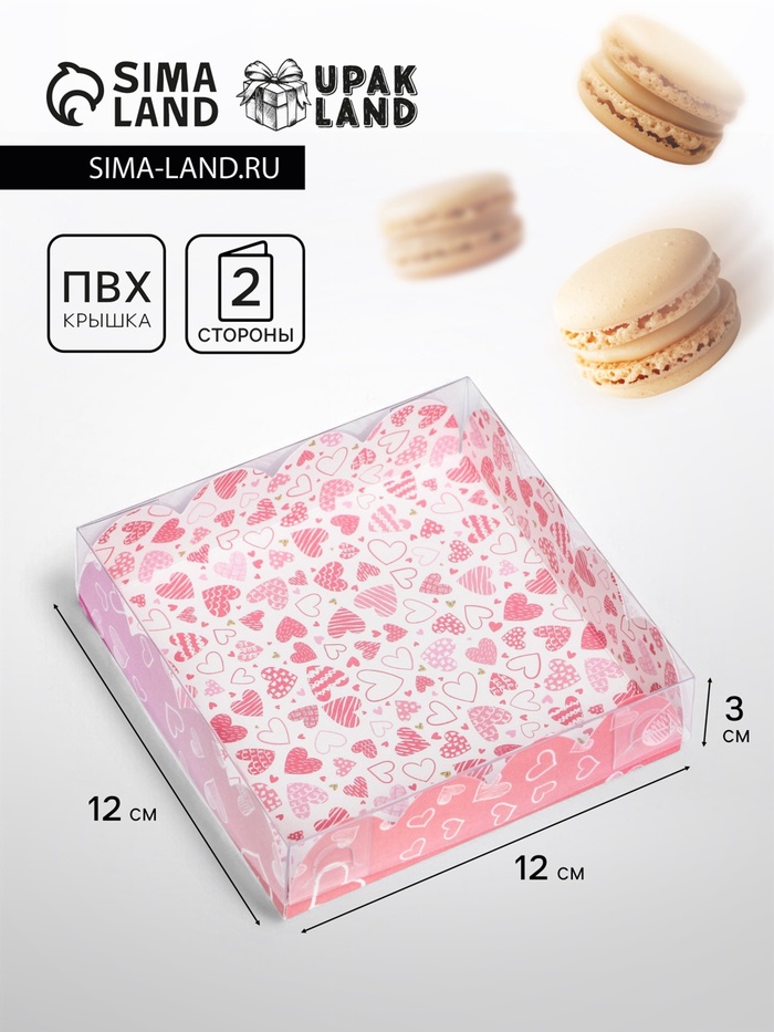 Коробка для печенья, кондитерская упаковка с PVC крышкой, «Сделано с любовью», 15 х 15 х 3 см