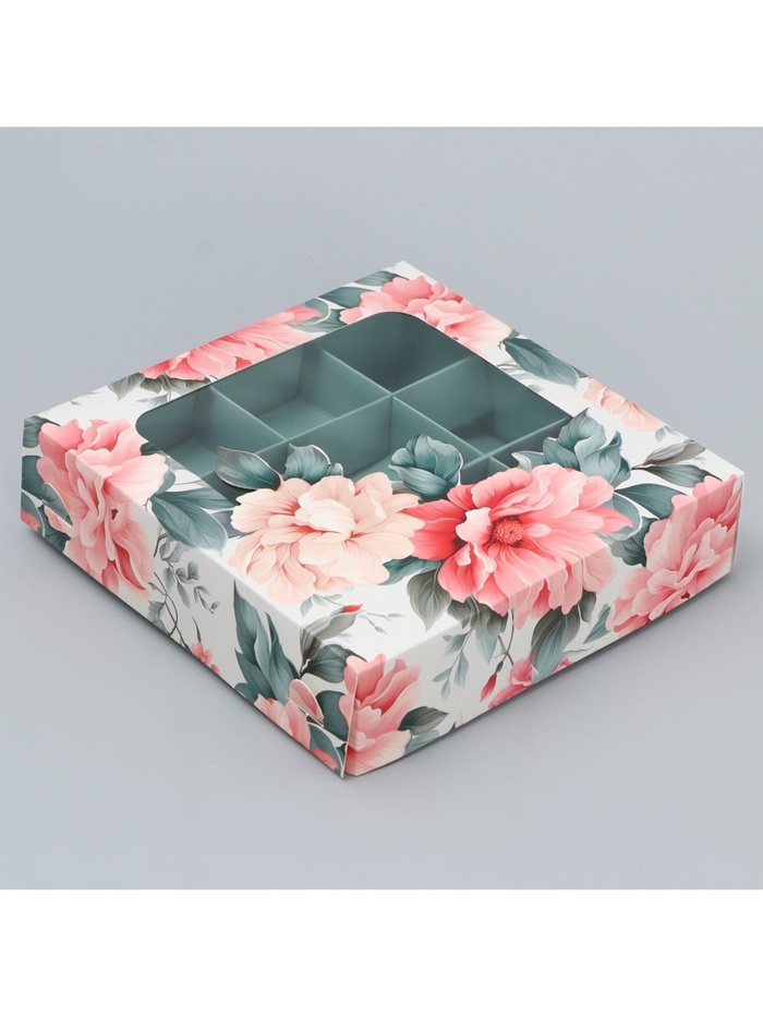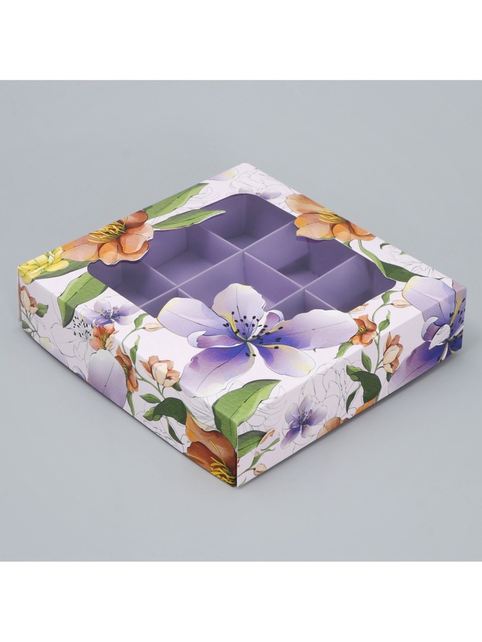 Коробка для конфет, кондитерская упаковка, 9 ячеек, «Нежность внутри», 14.7×14.7×3.5 см