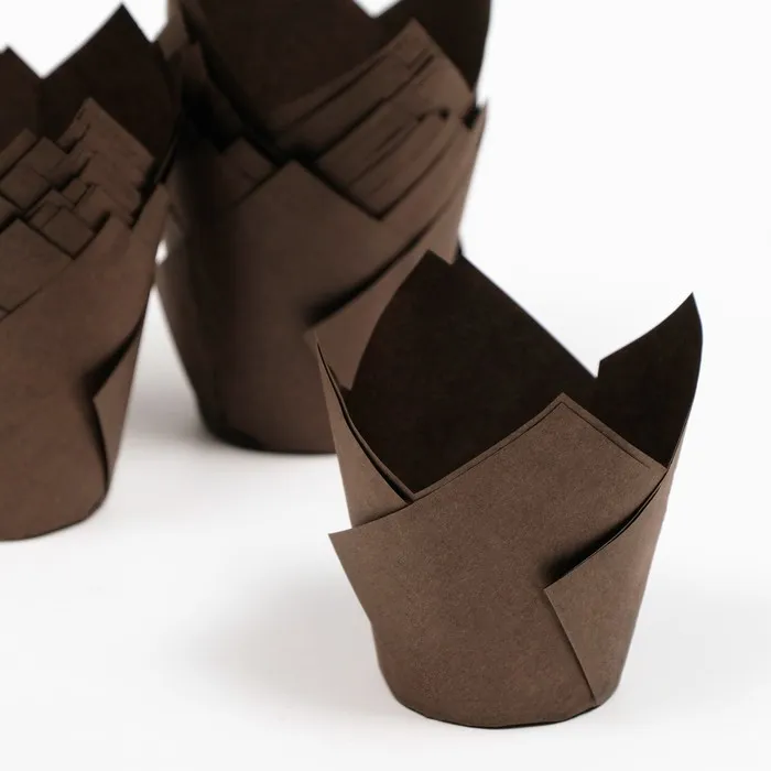 Форма для выпечки капкейков и маффинов, бумажная «Тюльпан», коричневый, 5×8 см