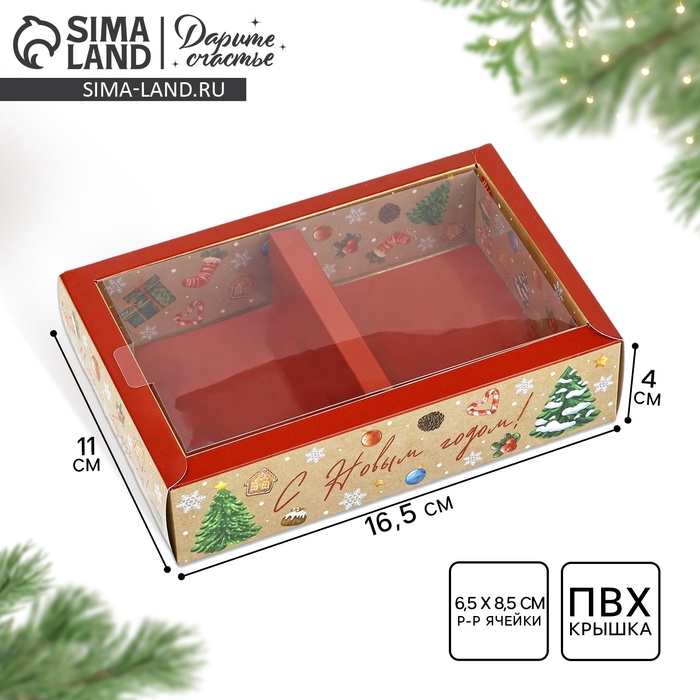Коробка складная с пластиковой крышкой «С Новым годом!», 16.5×11×4 см
