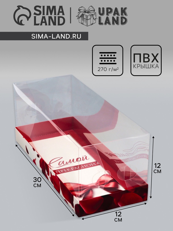 Коробка с прозрачной крышкой под рулет, «Самой прекрасной», 30×12×12 см Кондитерская упаковка