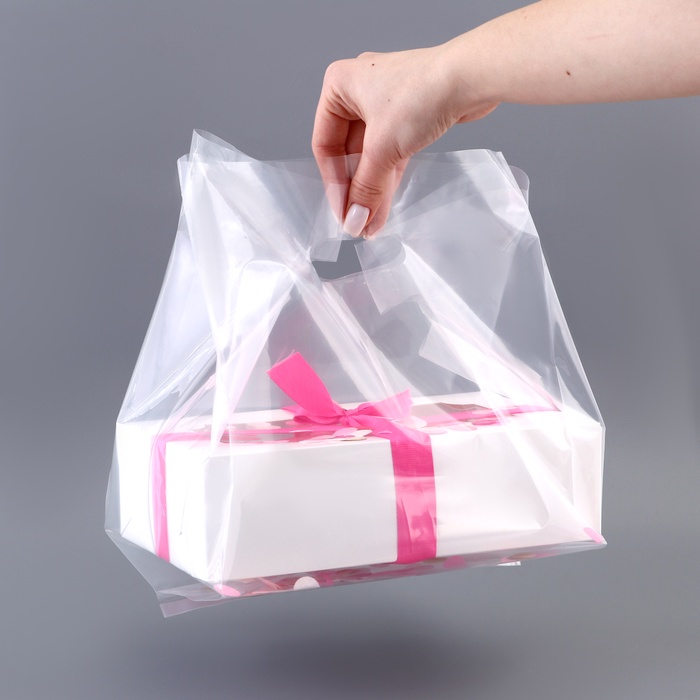 Пакет квадратный полиэтиленовый с вырубной ручкой, упаковка, прозрачный, 30×43+28 см ±5% 60 мкм