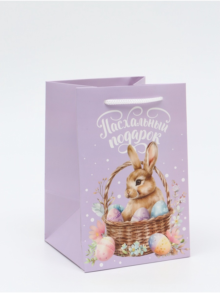 Пакет подарочный под кулич «Пасха», заяц, 12×18×12 см