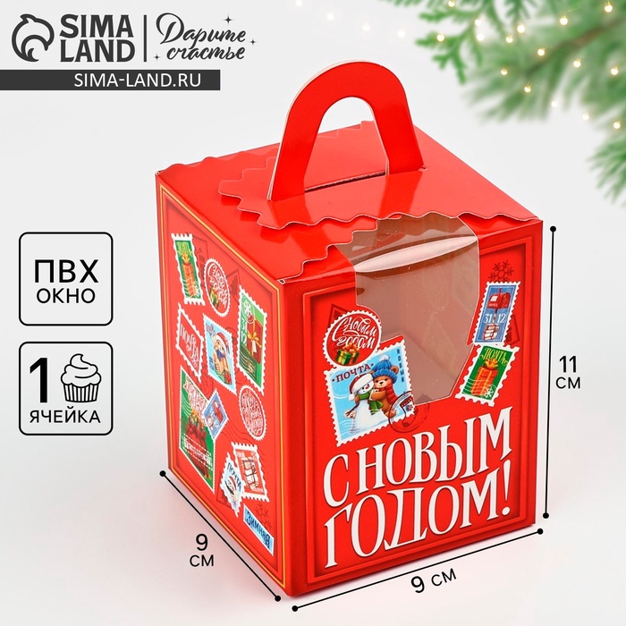 Складная коробка под один капкейк «С Новым годом!», 9 х 9 х 11 см