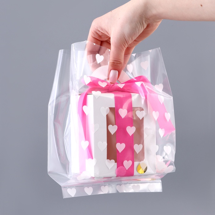 Пакет полиэтиленовый квадратный с вырубной ручкой, упаковка, «Сердечки», 15×25+6 см ±5% 60 мкм
