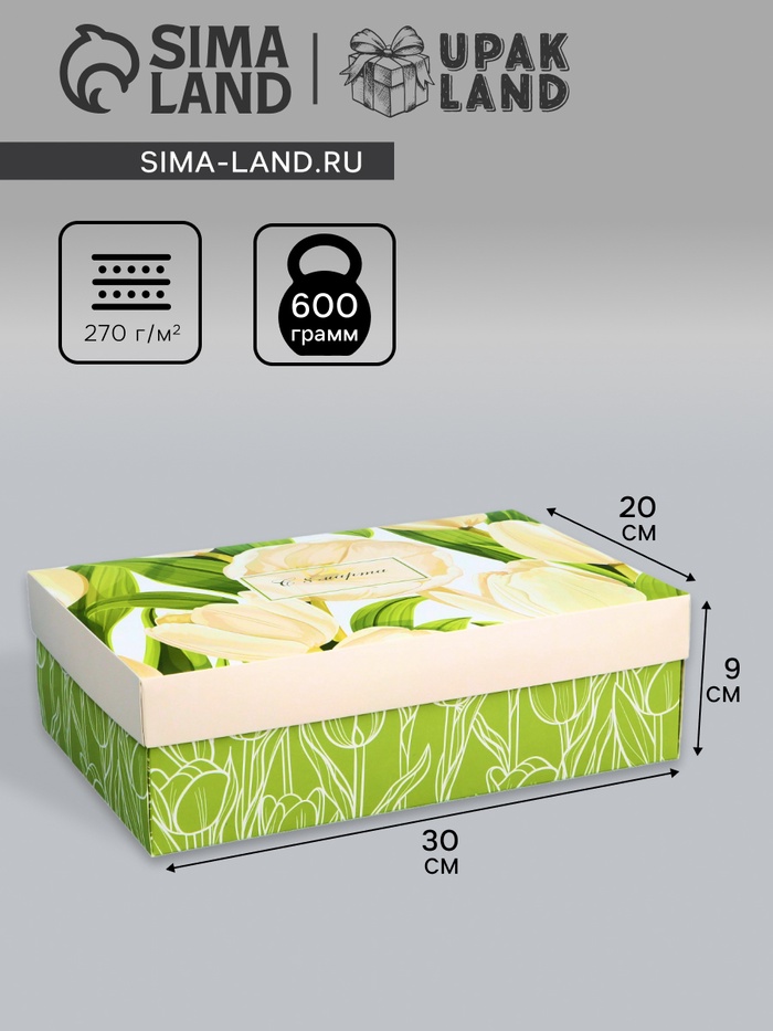 Коробка складная, крышка-дно, «С 8 марта», 30×20×9 см без окна