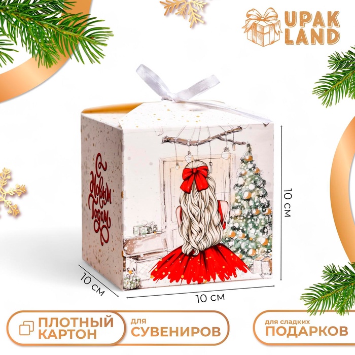 Коробка складная, подарочная новогодняя «Домашний уют» 10×10×10 см