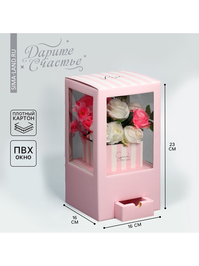 Коробка подарочная для цветов с вазой из МГК складная, упаковка, «Для тебя», 16 х 23 х 16 см