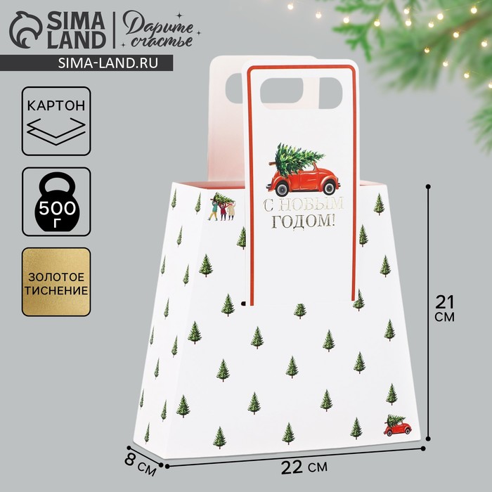 Коробка новогодняя складная с ручками «С Новым годом!» 23 х 8 х 32 см