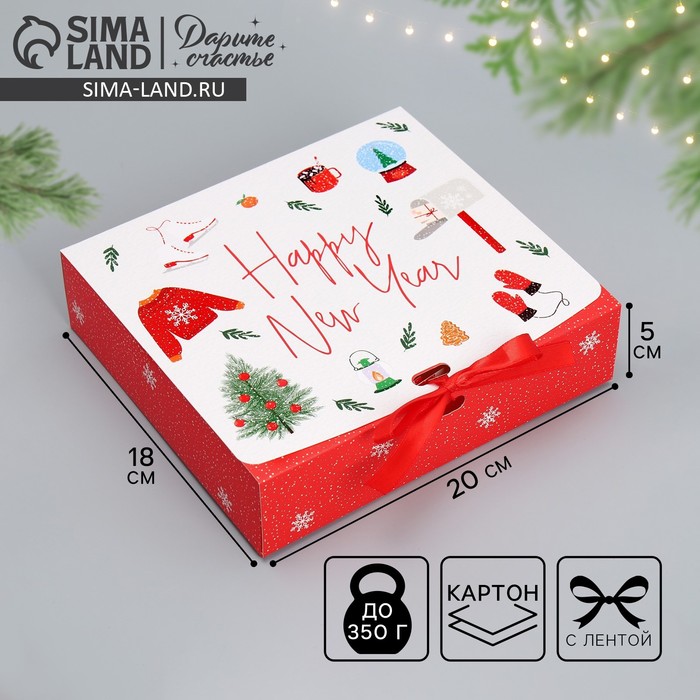 Коробка подарочная новогодняя складная «Счастливого праздника», 20 х 18 х 5 см