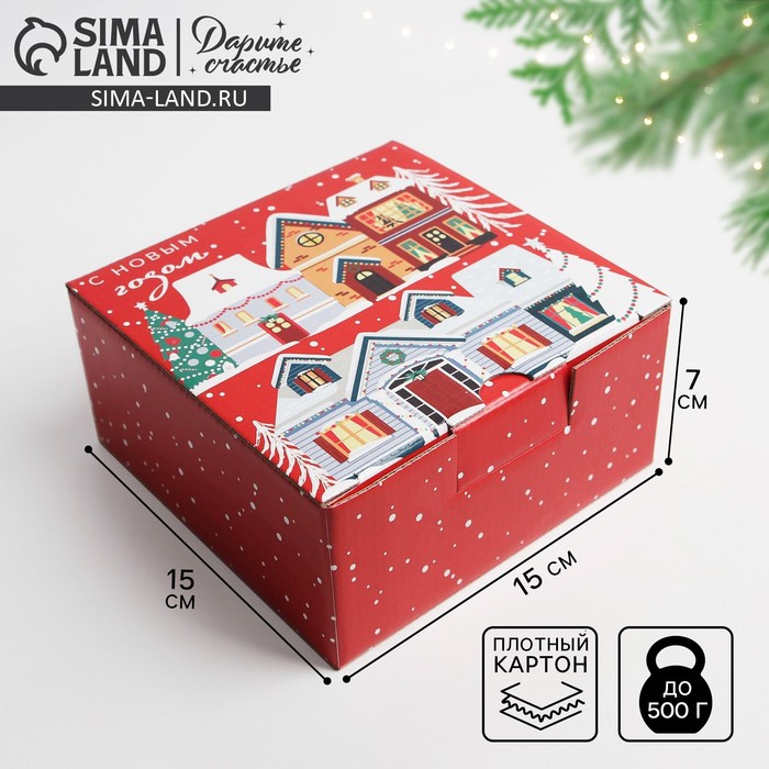 Коробка подарочная новогодняя складная «Зимний город», 15 х 15 х 7 см