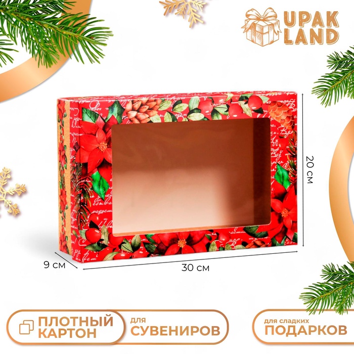 Коробка подарочная новогодняя складная, крышка - дно, с окном «Новогодние чудеса» 30×20×9 см
