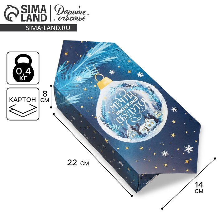 Подарочная коробка - конфета новогодняя складная «Мечты сбудутся», 14 х 22 х 8 см