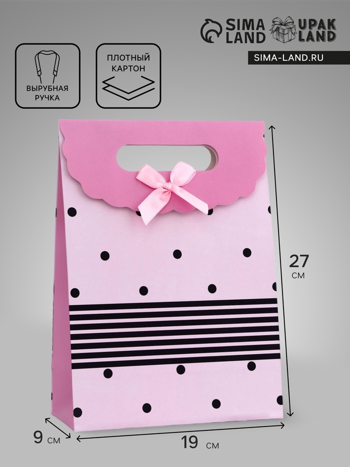 Подарочная коробка - пакет, упаковка с вырубной ручкой, «Розовый горох» , 19×9×27 см