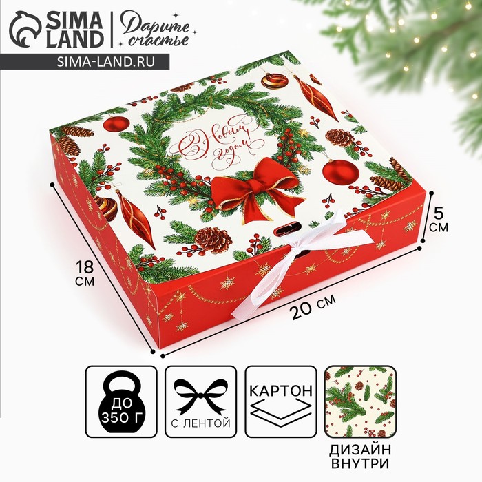 Коробка подарочная новогодняя складная, «С праздником», 16.5×12.5×5.2 см