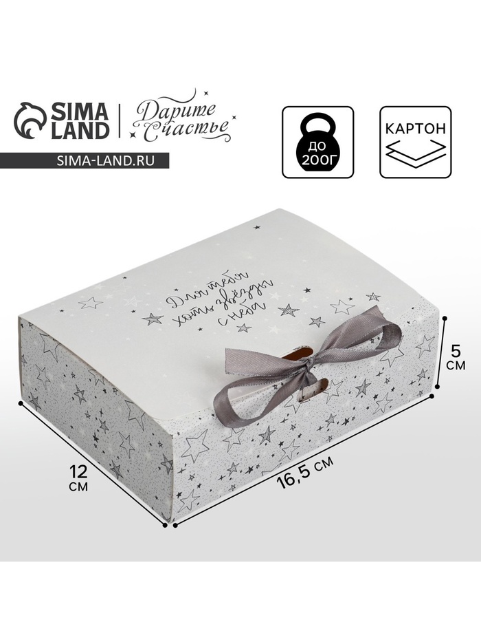 Коробка подарочная, упаковка, «Для тебя хоть звёзды», 16.5 х 12 х 5 см, БЕЗ ЛЕНТЫ