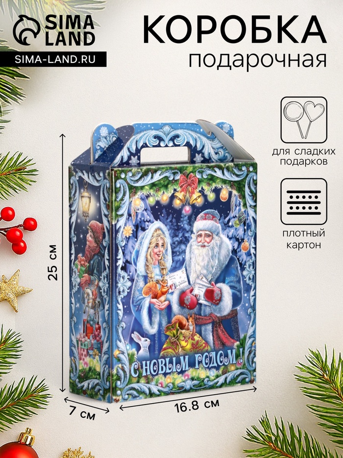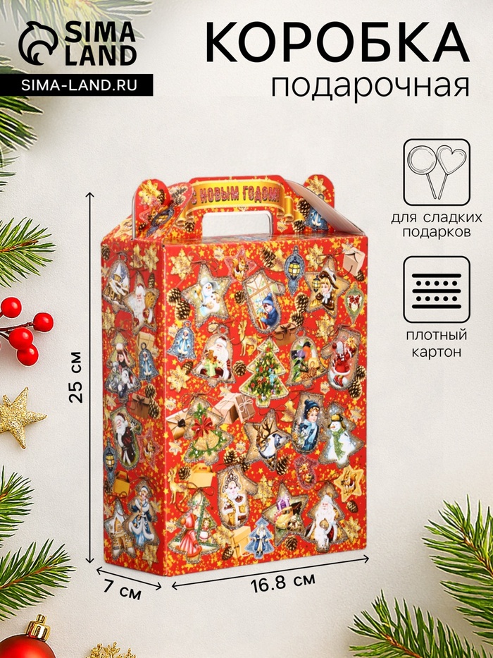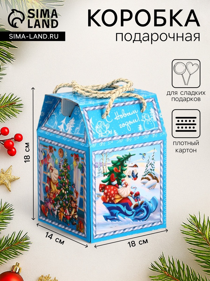 Подарочная новогодняя коробка «Новогодняя карусель», для сладких подарков, 16.8×7×25 см