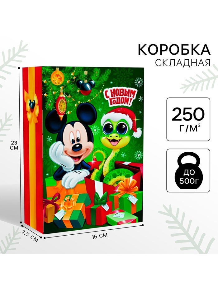Коробка подарочная «Новогодняя» 16×23×7.5 см, Микки Маус