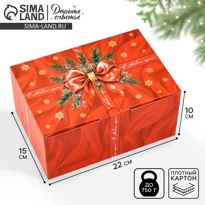 Коробка подарочная новогодняя складная «Роскошный бант», 22 х 15 х 10 см