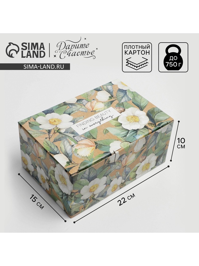 Коробка‒пенал, упаковка подарочная, «Цветы», 22 х 15 х 10 см
