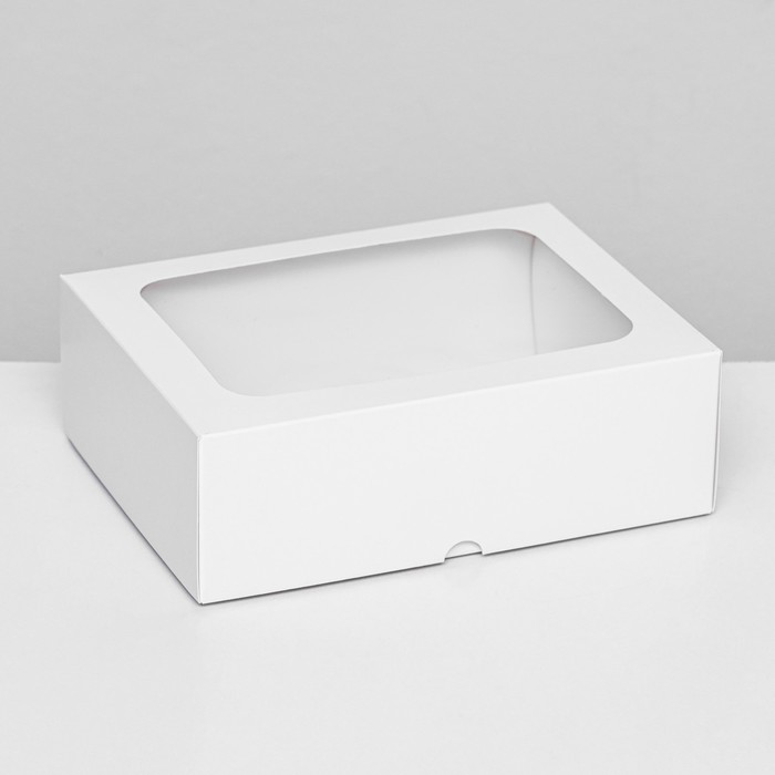 Коробка складная, крышка-дно, с окном, белый, 20×15×6.5 см