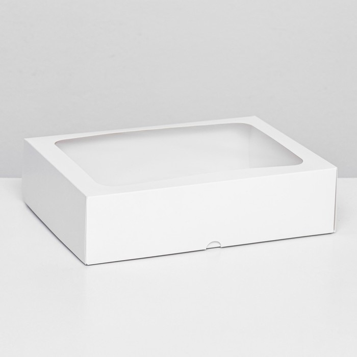 Коробка складная, крышка-дно, с окном, белый, 25×18×6.5 см