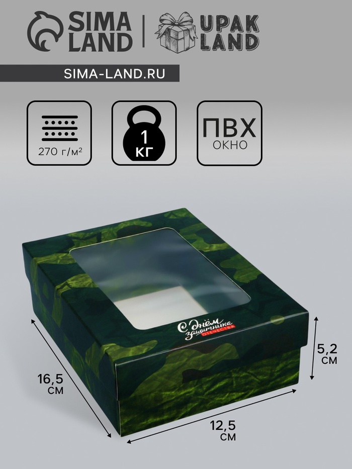 Коробка складная, крышка-дно, "С днем защитника Отечества", 16,5 х 12,5 х 5,2 см с окном
