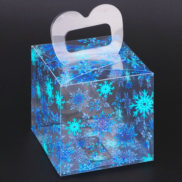 Коробка подарочная новогодняя складная ПВХ «Снежинки» 8×8×8 см