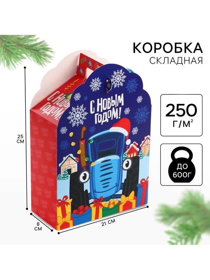 Коробка подарочная складная «С Новым годом», 17×25×8 см, Синий трактор