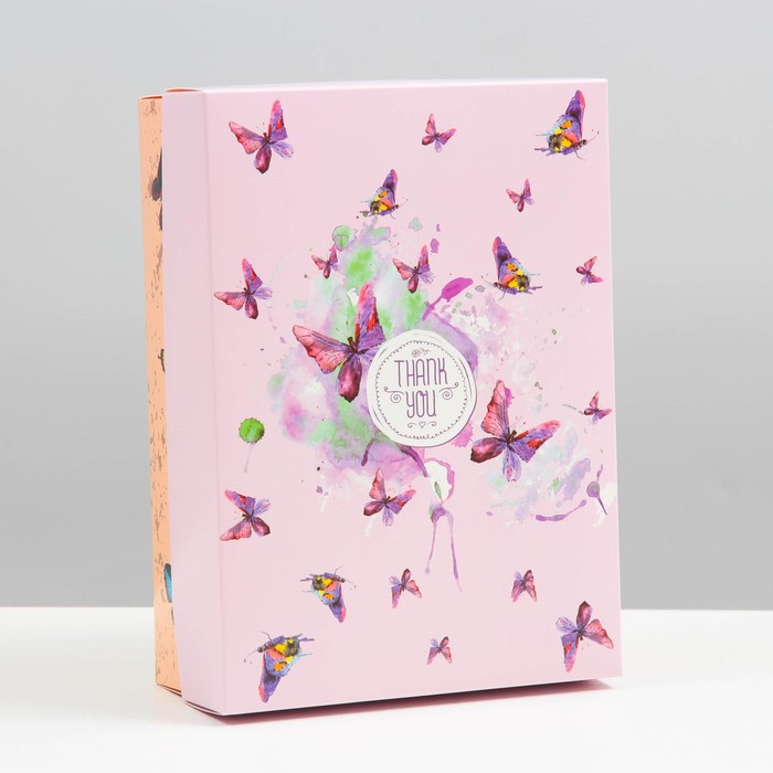 Коробка подарочная, крышка-дно, сборная "Бабочки" , 21 х 15 х 7 см