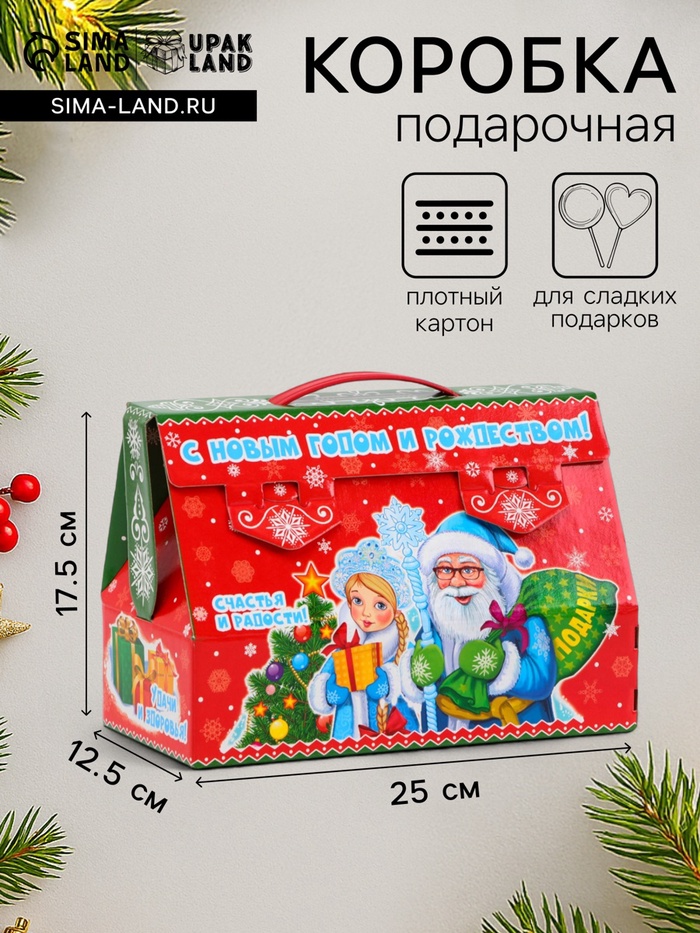 Подарочная коробка новогодняя Дед Мороз и Снегурочка, для сладких подарков, 17.5×25×12.5 см