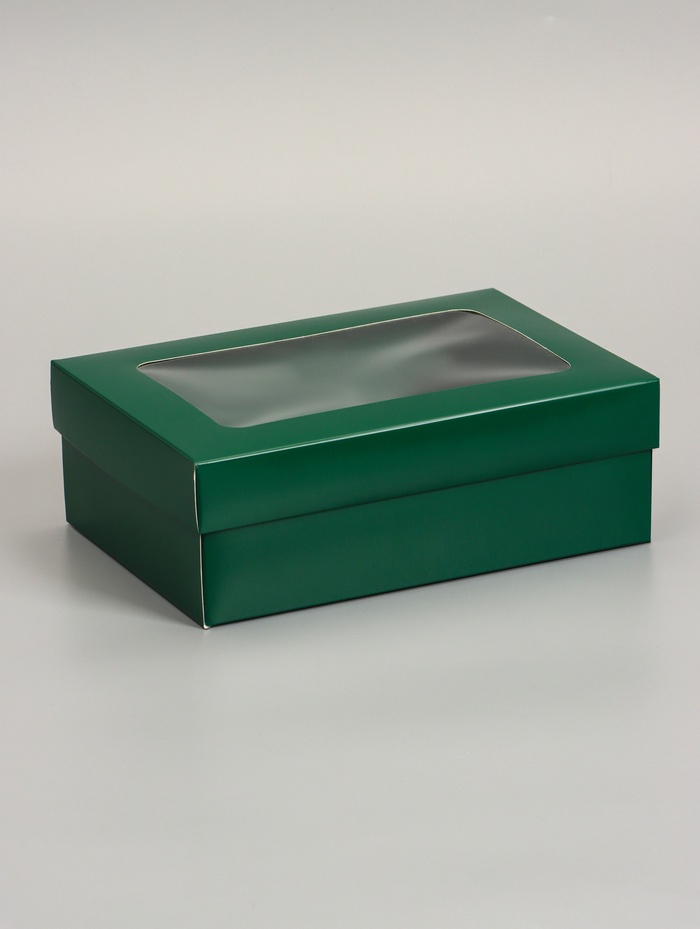 Коробка складная, крышка-дно «Армейский зелёный», с окном 21×15×7 см