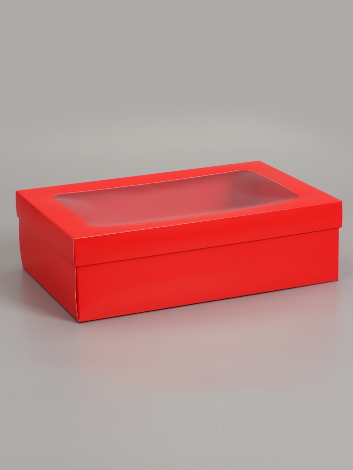 Коробка складная, крышка-дно, с окном, красная, 24×17×8 см