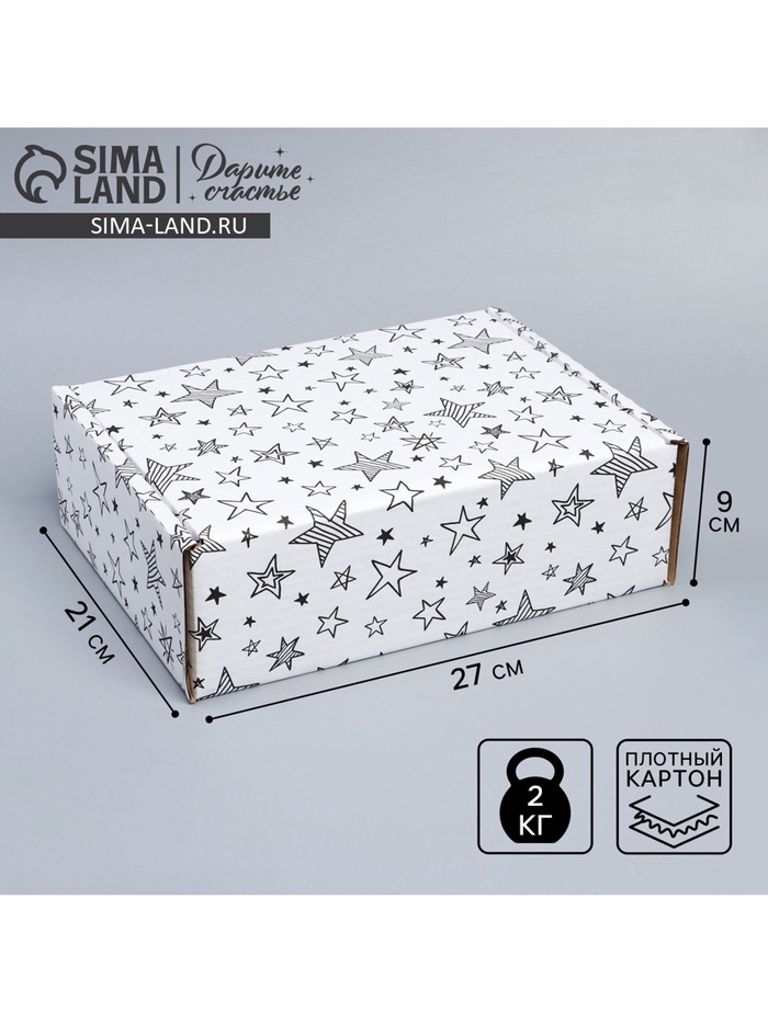 Коробка подарочная сборная, упаковка, «Звёзды», белый, 27×21×9 см