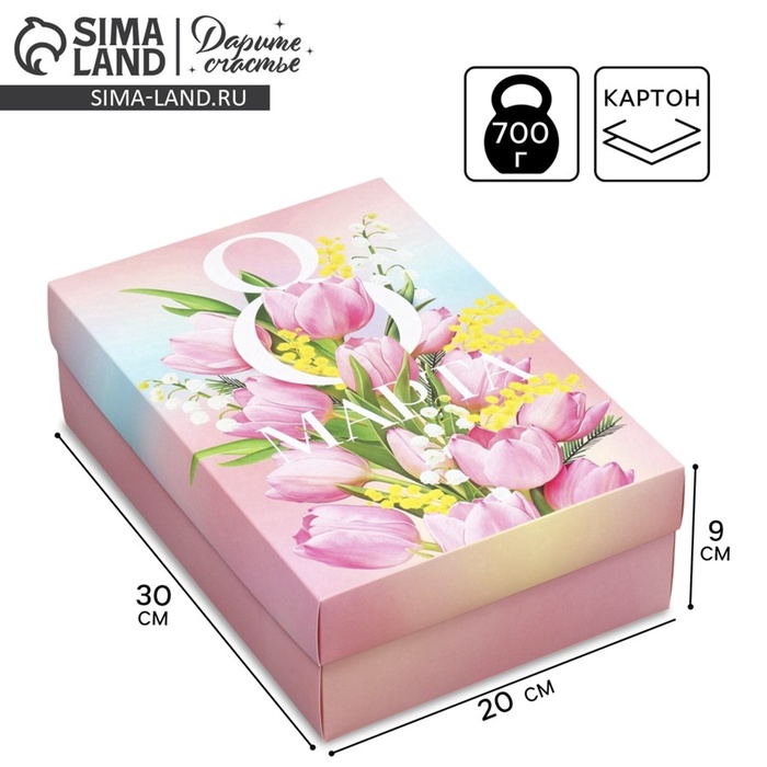 Коробка подарочная складная, упаковка, «8 марта», 30×20×9 см