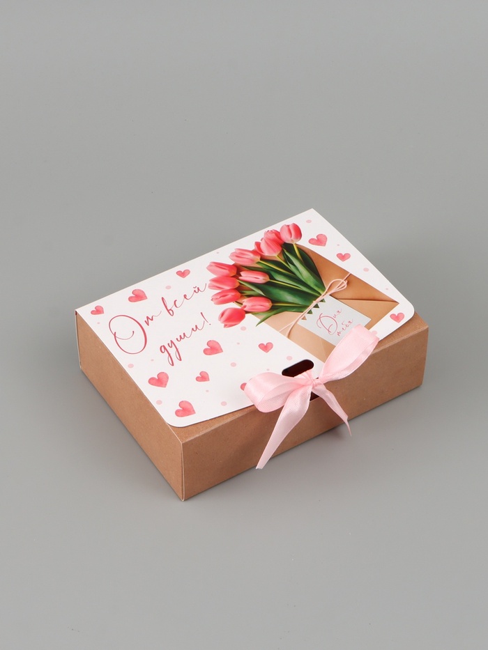 Коробка подарочная сборная, упаковка, «С праздником весны», 8 марта, 22×15×10 см