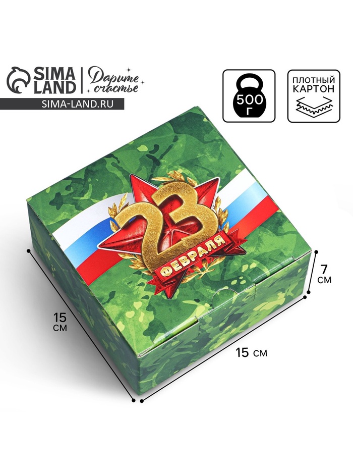 Коробка подарочная сборная, упаковка, «23 февраля», 15×15×7 см