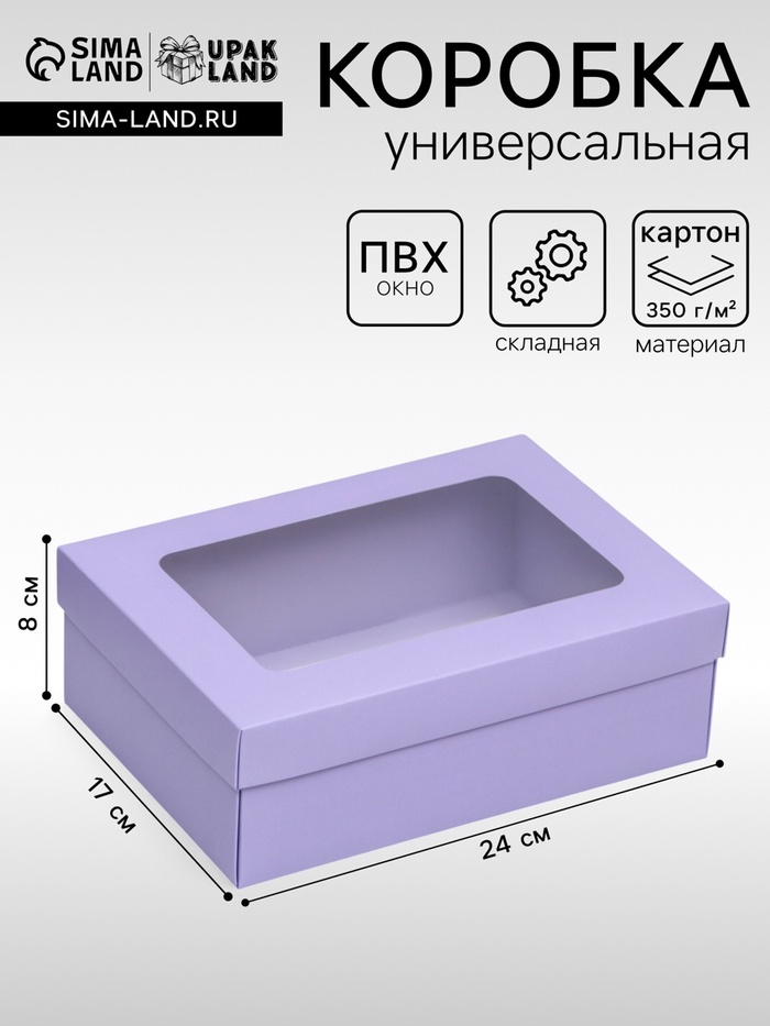 Коробка подарочная складная, упаковка, крышка-дно, с окном, сиреневая, 24×17×8 см