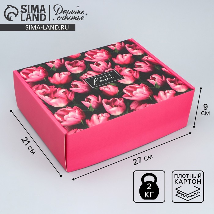 Коробка подарочная складная, упаковка, «Тюльпаны», 27×21×9 см