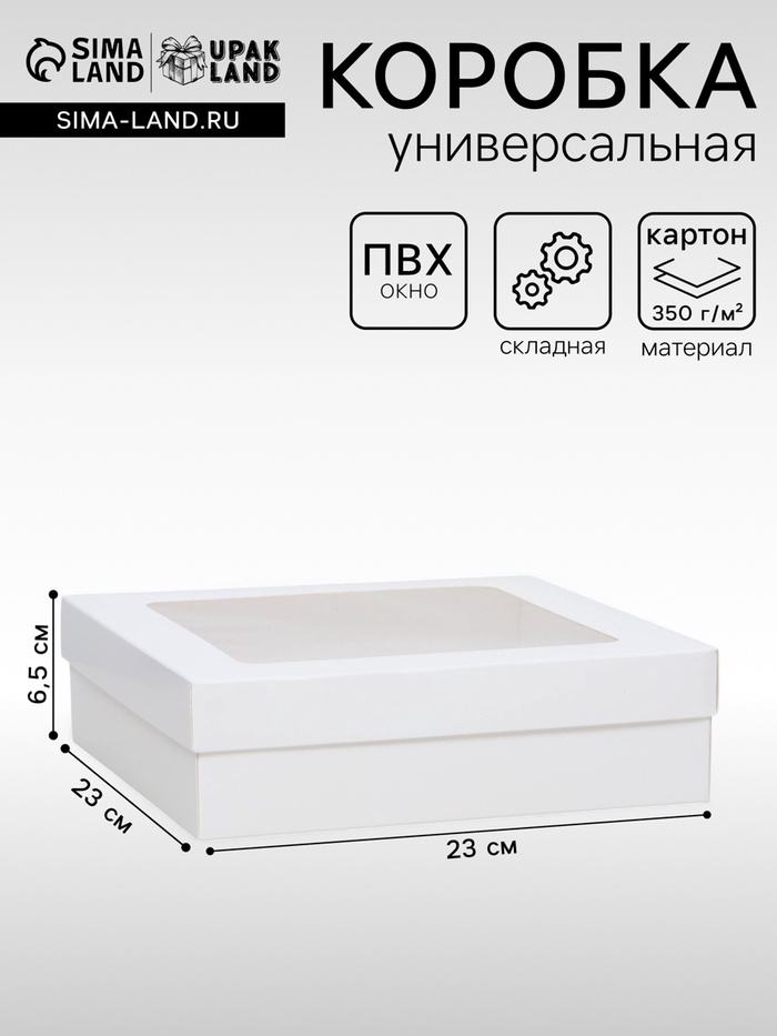Коробка подарочная складная, упаковка, крышка - дно, с окном, белая, 23×23×6.5 см