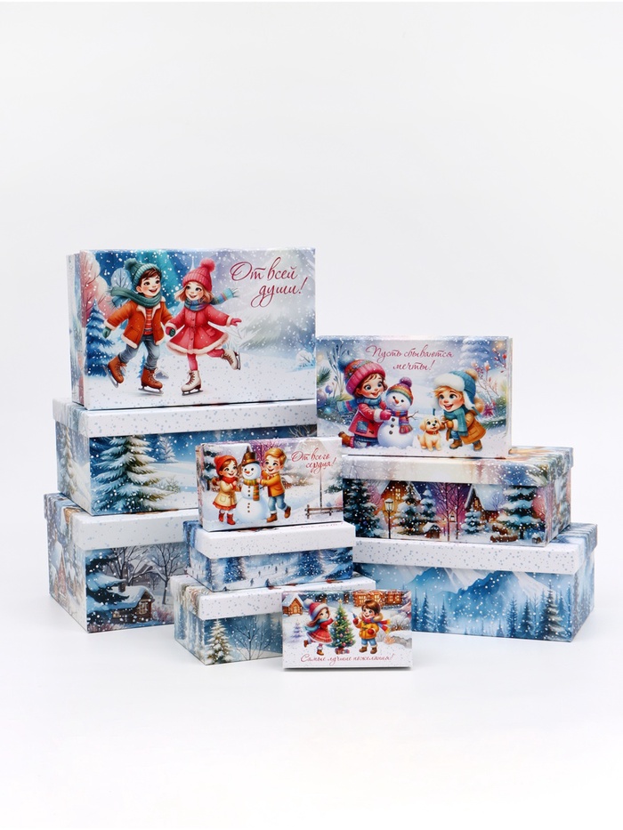 Набор подарочных новогодних коробок 10 в 1 «Новогодние каникулы», 32.5×20×12.5 - 12×7×4 см
