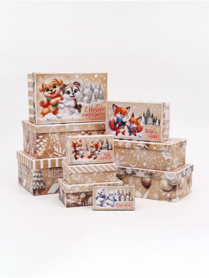 Набор подарочных новогодних коробок 10 в 1 «Зверята», 32.5×20×12.5 - 12×7×4 см