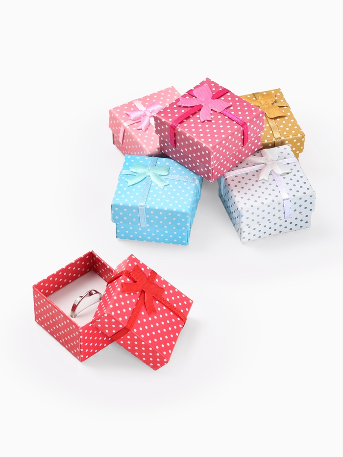 Набор подарочных коробочек под кольцо 6 шт. «Горошек» с бантом, 4.5×4.5 см, МИКС