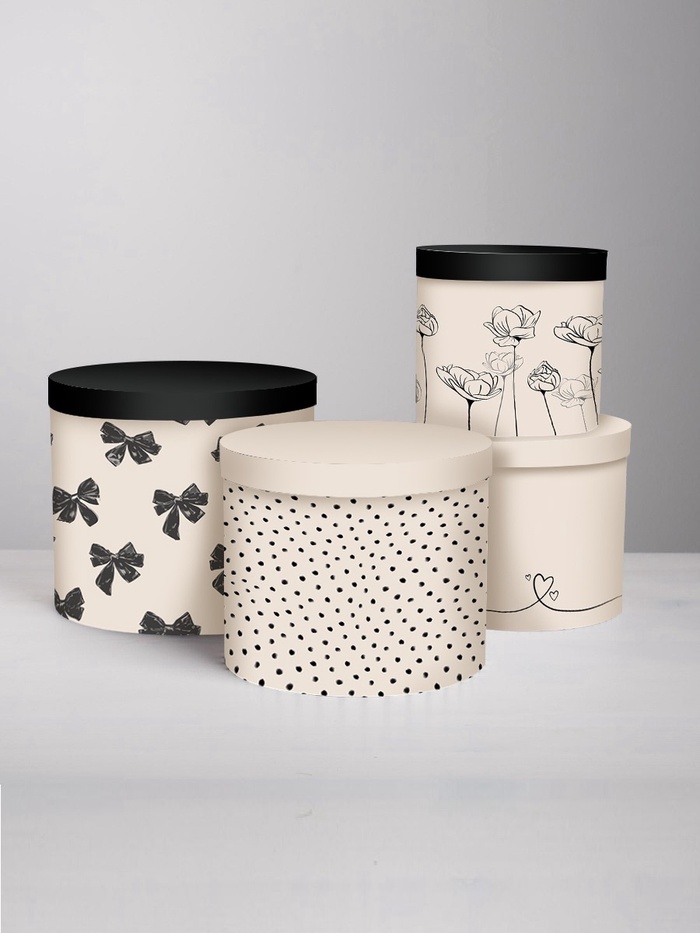 Набор шляпных коробок 4 в 1 «Бежево-чёрный», 14 × 13 см - 20 × 17,5 см