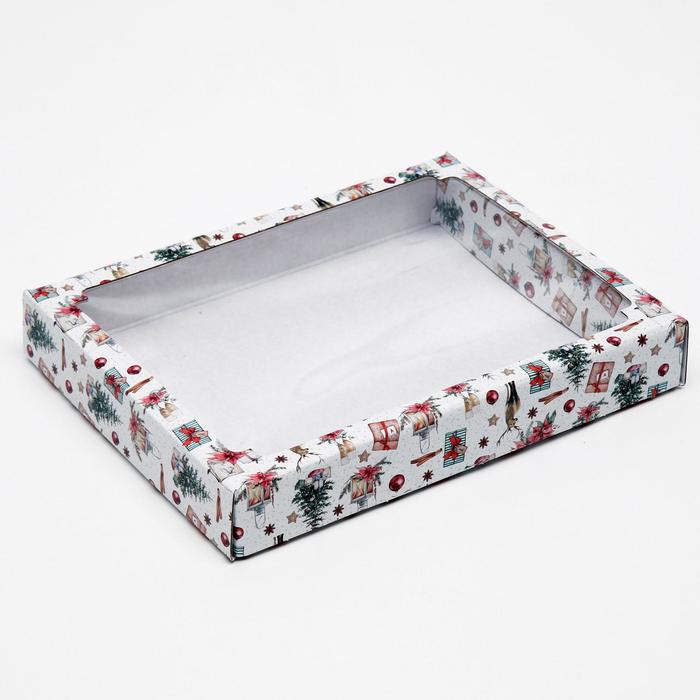 Коробка сборная крышка - дно с окном, «Рождественский вечер», 26×21×4 см