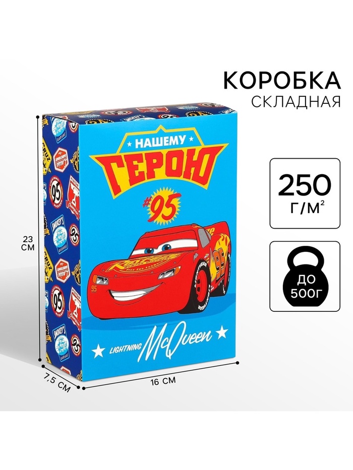 Подарочная коробка, складная «Герою»,16х23х7.5 см, Тачки